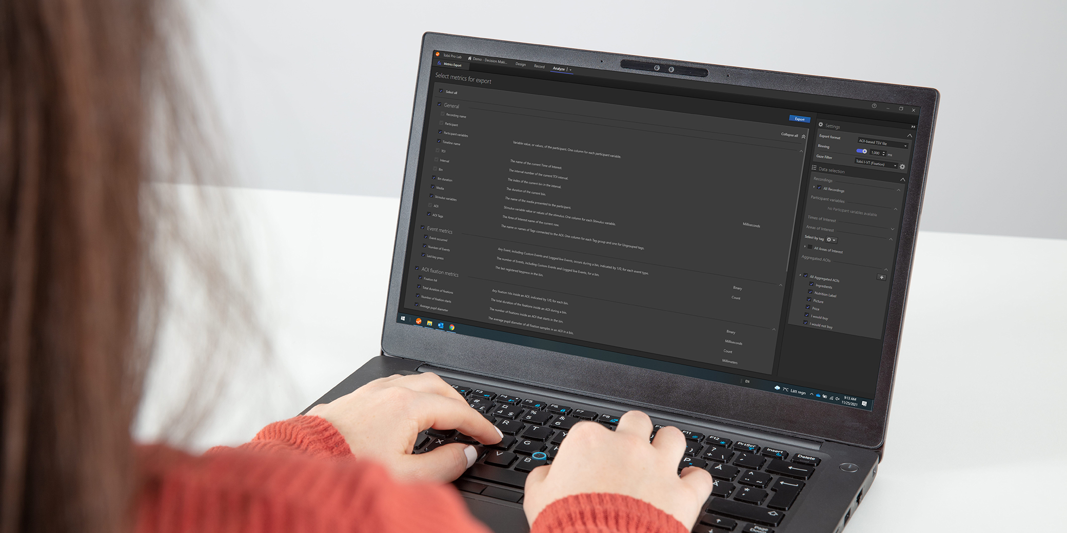 Tobii Pro Lab のビン化されたメトリクスのコンセプトをご紹介しています。Tobii Pro Labのバージョン1.171から、アイトラッキングデータをビン化した一定の時間範囲ごとに算出し、時間的な変化を解析することができるようになりました。